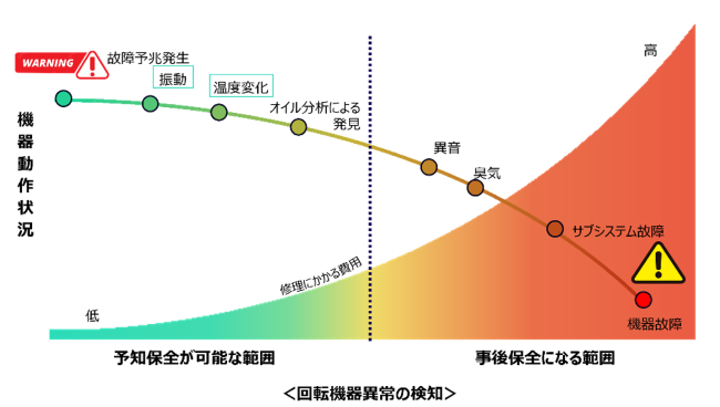 こうした背景から修繕負担の増加に伴い、従来の「事後保全」「予防保全(TBM)」から「予知保全(CBM)」への転換が求められています。予知保全の実現には、設備の状態をリアルタイムで監視し、異常の兆候を早期に検知することが不可欠です。これにより、計画的なメンテナンスや部品調達が可能となり、突発的な故障や生産停止を未然に防ぐことができます。今後は、AIやIoT技術を活用した予兆検知ソリューションの導入が、製造業の安定稼働と競争力強化の鍵となります。