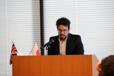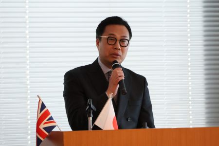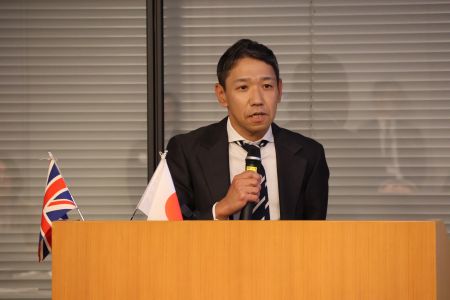 まずは、赤司氏が「本セミナーの開催が駐日英国大使と三井情報の大島氏の出会いから始まった」と開催の経緯を説明。「三井物産はウェルネス領域を最重要戦略の一つと捉え、海外の病院事業や国内のAI創薬スタートアップ企業・ゼウレカへの支援など、幅広く活動している」と紹介した。また、「特にゲノム等のデータ解析が医療を飛躍的に進化させる鍵になると確信しており、コミュニティや事業を通じた日英の新たな連携に期待している」と語った。