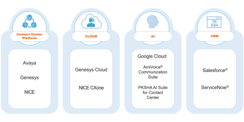 アナログからデジタル、オンプレミスからクラウドなど、時代と共に変化するお客様のニーズに応えられるよう、コンタクトセンターメーカー製品を幅広く取り扱っています。
