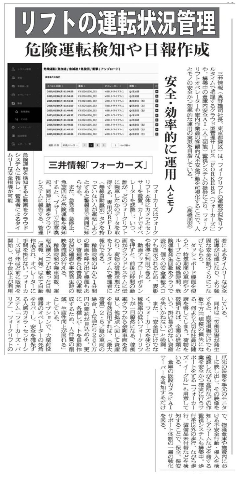 物流ニッポンにてFORKERSが掲載されました ≪2025年07月25日≫
