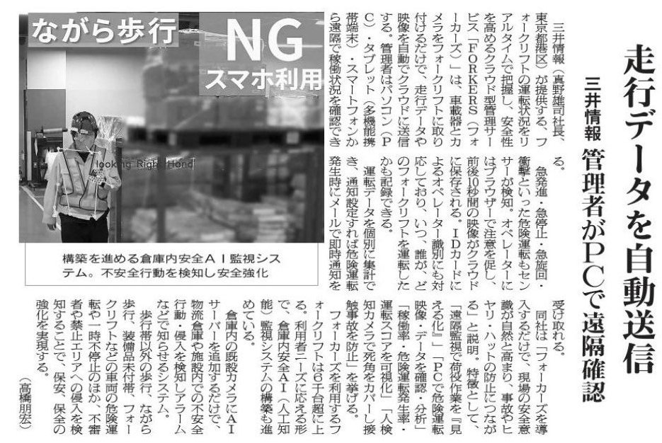 2025年07月29日(火)の物流ニッポンにて、FORKERSソリューションの紹介記事が掲載されました。