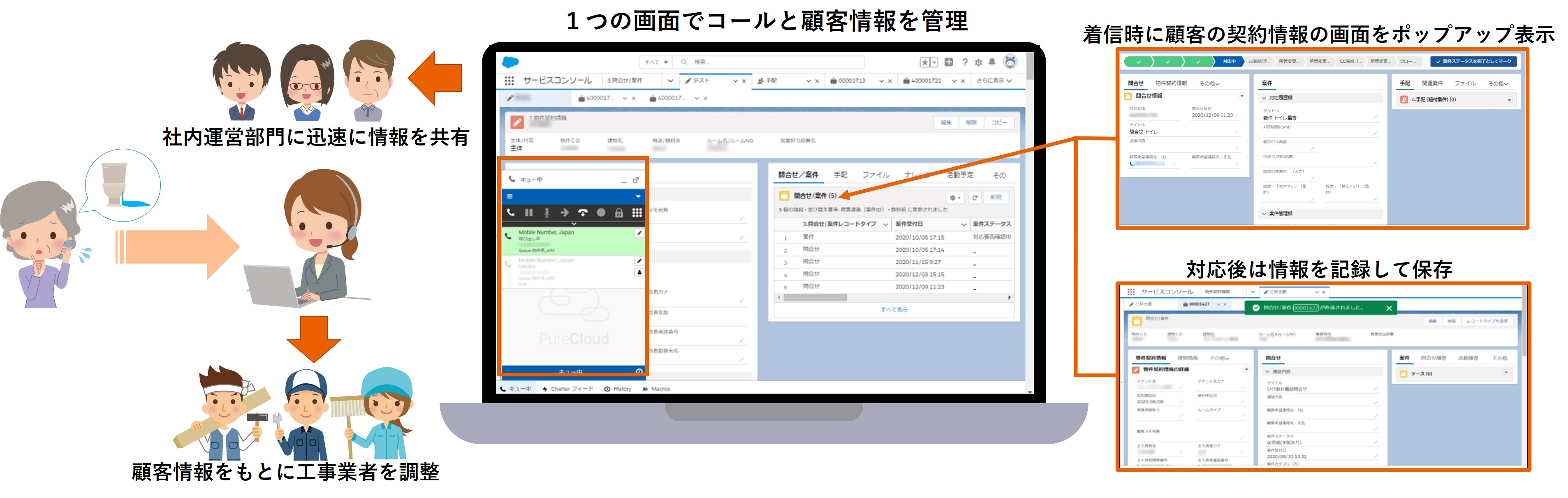 - Service CloudとGenesys Cloud CXを連携させることで顧客情報の管理と共有を加速