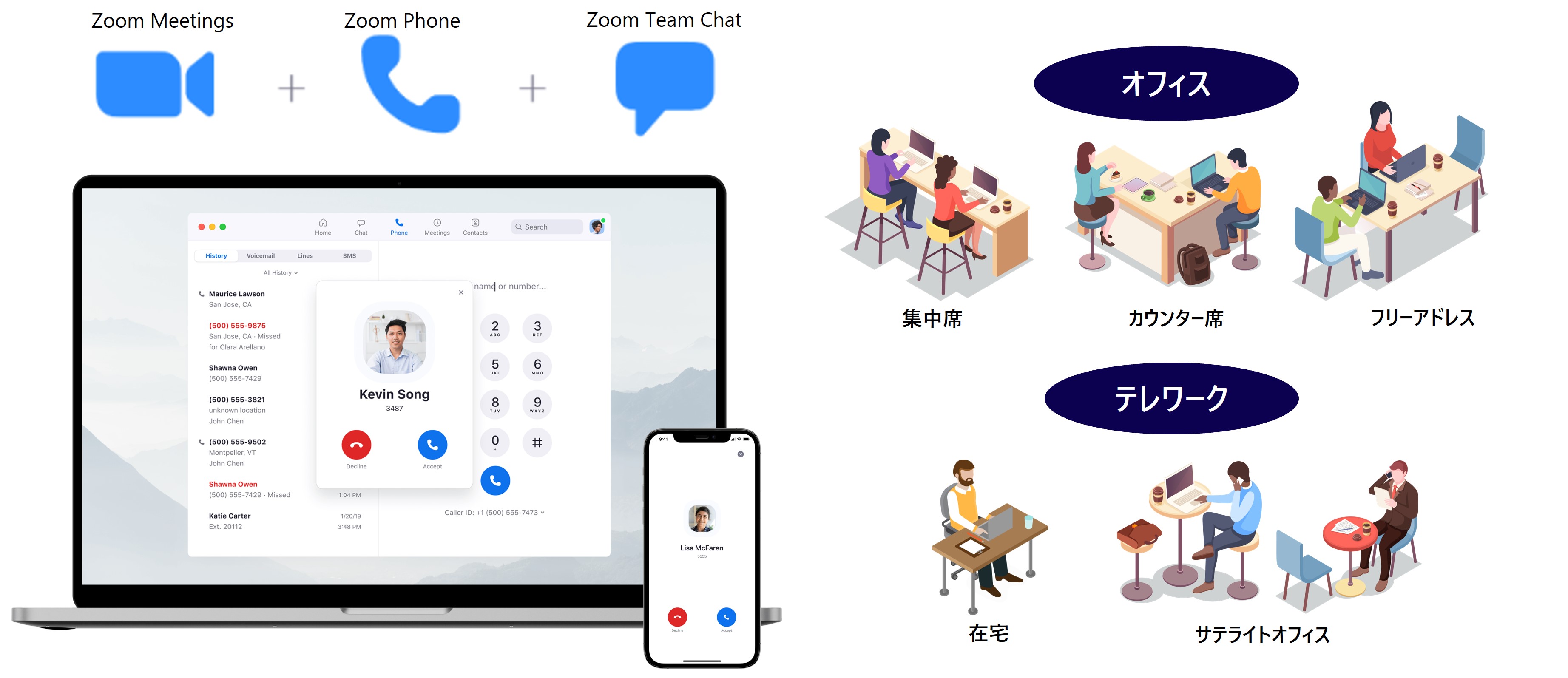 Zoom Phoneはインターネット接続したPCやスマートフォンから企業/個人の電話番号を利用することができます。そのため、従業員は電話対応のために出社する必要がなくなります。