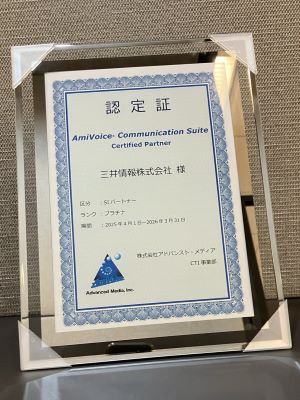 認定理由:『AmiVoice® Communication Suite』の認定代理店制度において最上位となるプラチナに値する販売実績・貢献が認められました。