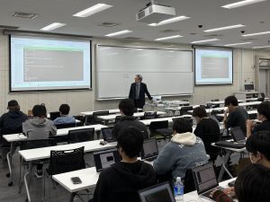 2回生を対象として実務に近い学習機会の提供を目的に、ネットワーク機器を用いた実習中心の講義を実施しました。アクセス制御や暗号化通信の仕組み、マルウェア検知、ログ分析など、セキュリティ運用の一連の流れについて実機演習を通じて体験。暗号化通信が前提となる現代のネットワーク環境において、どのように安全性を確保するのかを実践的に学びました。