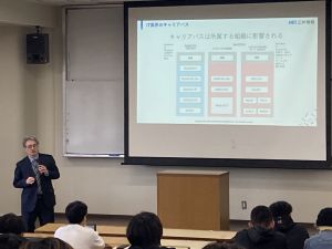 ITエンジニアの役割やキャリアパス、業界で求められる基礎知識について解説しました。次世代のIT人材育成を目的に、技術分野への関心を高めるとともに、将来の進路を具体的に考えるきっかけとなる講義を実施しました。