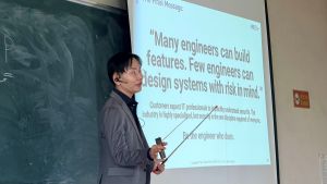 本講義は、サイバーセキュリティリスクに関する体系的な理解の提供と、現代のソフトウェアエンジニアリングのキャリアに向けた実践的な知識・スキルの習得支援を目的に、「なぜすべての開発者はサイバーセキュリティを理解しなければならないのか」をテーマとして実施しました。サイバーセキュリティは特定の専門職だけでなく、すべてのITエンジニアが担う横断的な責務であることを、ITSSフレームワークを軸に解説しました。また、ベトナムでの実際のサイバー被害事例を取り上げ、攻撃の多くが最新技術ではなく、設計や運用上の甘さを突いたものである点を示すとともに、ランサムウェアの産業化などに代表されるサイバー攻撃の進化や攻撃者の思考プロセスについても説明し、開発段階からの予防的なセキュリティ対策の重要性について理解を深めてもらいました。