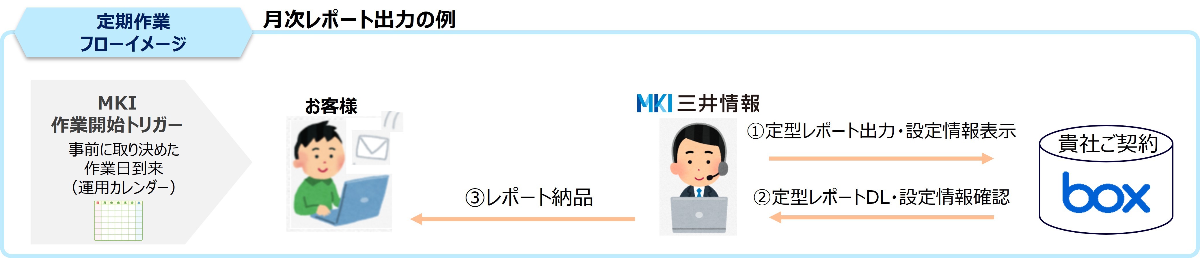 Boxユーザ登録や定期レポート作成などの定型業務を当社が代行することで、お客様の運用負荷を軽減致します。