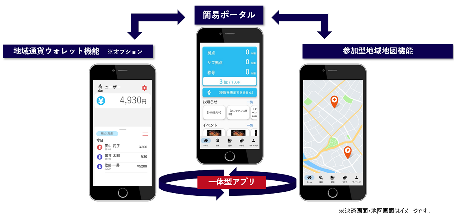三井情報では、地域コミュニティ活性化や地域経済活性化に向けた地域DX推進の一助として『 MIALK(ミアルク)』を提供し、地図アプリを基点とした域内回遊によるまちの賑わいや健康増進の実現、更には地域デジタル通貨との連携によるお金の地産地消につなげるためのデジタル支援策を提供します。