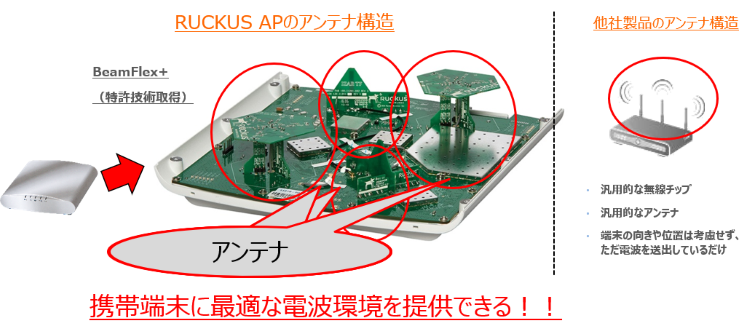 RUCKUS APのアンテナテクノロジー:BeamFlex+
