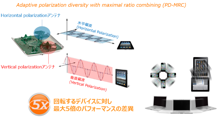 - クライアント環境に合わせ、事前定義されているアンテナパターンを用い、パケット単位でシグナルを最適化